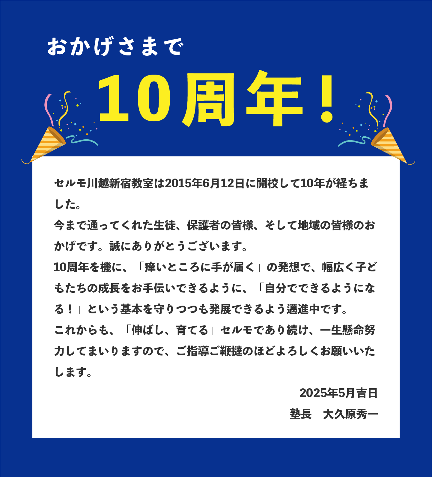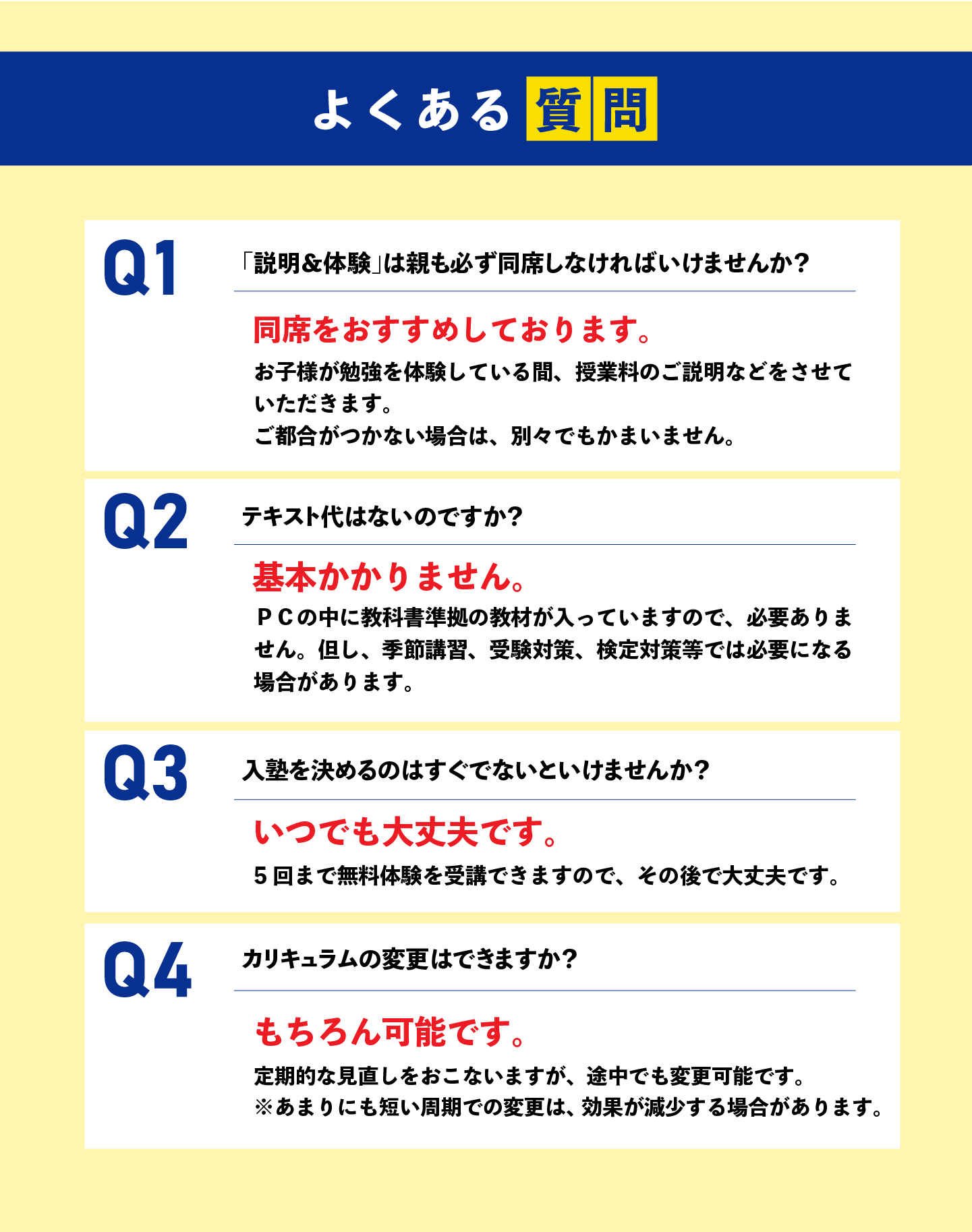 | 定休日 | 季節休暇期間は当教室カレンダーによる |